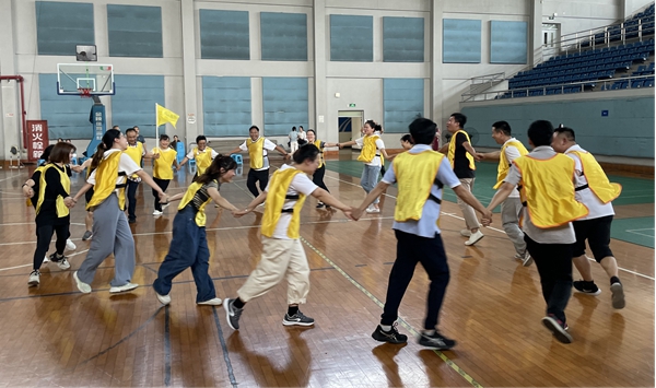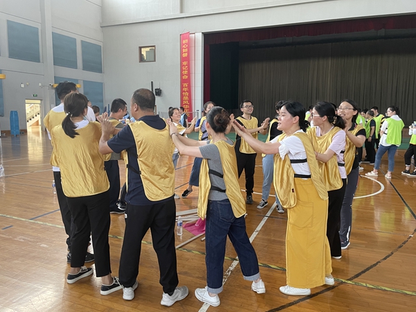 下午在学校体育馆内开展“携手共进,砥砺前行”的素质拓展。后勤参加人员分成四队,推荐产生了队长和助手,组织和带领队员们积极参与了达芬奇密码、挑战No.1、决战流沙河和党史知识竞答等四个环节的比赛和活动。大家热情高涨,奋勇争先,团结协作,为取得最后的胜利贡献自己的力量。通过集体活动,激发员工活力,提高团队协作能力,增强后勤凝聚力。