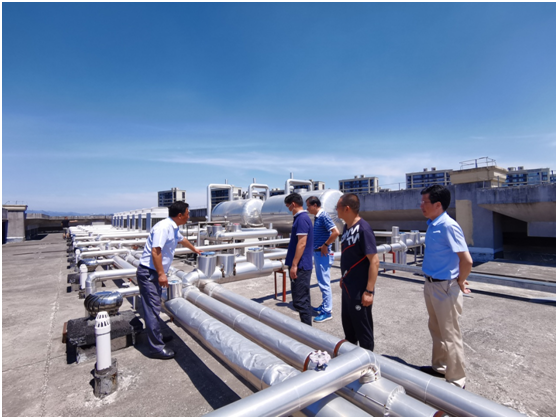 座谈会结束后,考察组实地查看了浙江工业大学莫干山校区学生公寓生活热水机组的运行情况。
