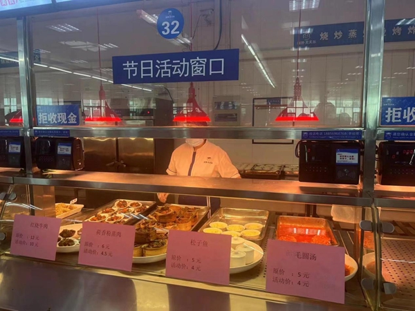 为了满足师生节日餐饮需要,中秋小长假期间,德园、馨园、明园、新二、新三、新四等食堂纷纷推出“特色菜活动价”,每天推出二十多种特色菜品,低于原价优惠售卖。像手工香肠、糯米藕、毛圆汤、红烧狮子头、鲍鱼烧肉等“网红菜”皆榜上有名,让师生切实感受到节日的温暖和后勤人的重视与关心。