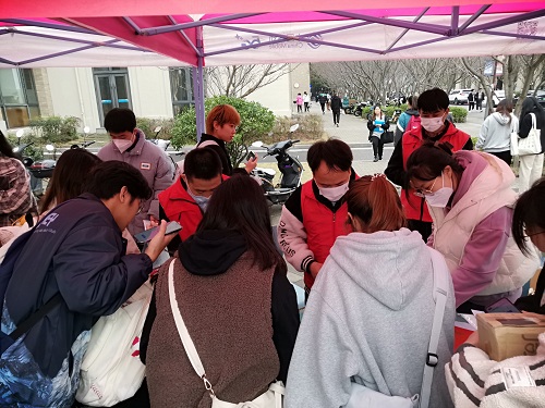 活动前期,志愿队通过组织会议,确定参加本次活动志愿组人员,分配相关工作,并提前布置横幅,大屏幕播放节水宣传片,为本次活动预热。活动当天,支部宣讲本次活动精神后,分别于新城校区一食堂东门、定海校区一食堂南门前开启活动。
