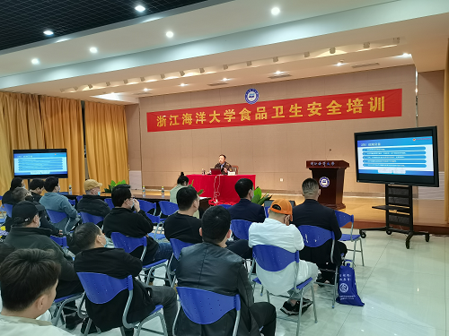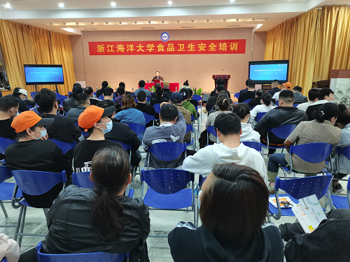 为了提高餐饮从业人员的食品卫生安全意识,进一步加强食堂的各项规范操作,4月12日中午,浙江海洋大学公共事务服务中心邀请舟山市市场监督管理局新城分局食品药品监督管理科科长殷福祥在学校杨存国二号报告厅为餐饮从业人员进行食品卫生安全培训。会议由中心饮食服务部副主任吴晨红主持,新城校区全体食堂员工及外包食堂相关负责人、商铺人员参加培训。