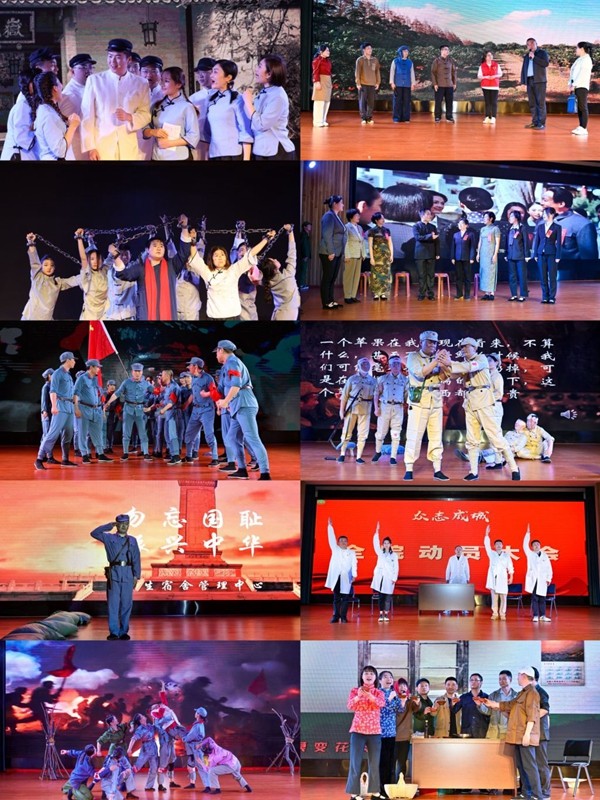 来自后勤保障部7个在职党支部以及土木工程学院学生天佑国际党支部,研结构第三党支部,公共管理学院公共管理本科生党支部,外国语学院本科生小语种党支部,建筑与艺术学院音乐表演本科生党支部等5个结对共建学生党支部共150余名党员参加了表演。