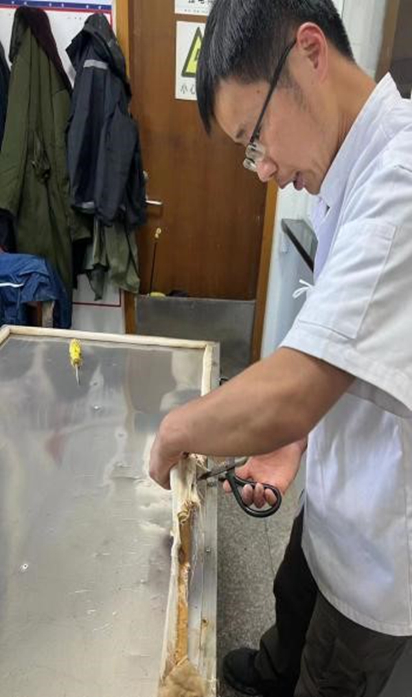 作为餐厅经理,沈志强的工作多而杂,原料验收、日常设施设备管理及维护、员工日常管理、餐厅卫生制度化管理等,都离不开他的辛苦努力。在每一个平凡的工作日常中,哪里有需要哪里就有他的身影。他起早摸黑,组织协调员工的工作,保障餐厅正常开餐。