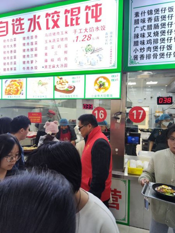 11月份组织了“知味堂、溢香园餐厅志愿者活动”,志愿者现场引导学生文明就餐、光盘行动、分类倾倒厨余垃圾,劝阻身穿实验服就餐;组织了“清理‘僵尸车’专项整治行动”,志愿者挪车清扫、分类清理,引导师生勤俭节约、爱护环境,维护文明校园成果。