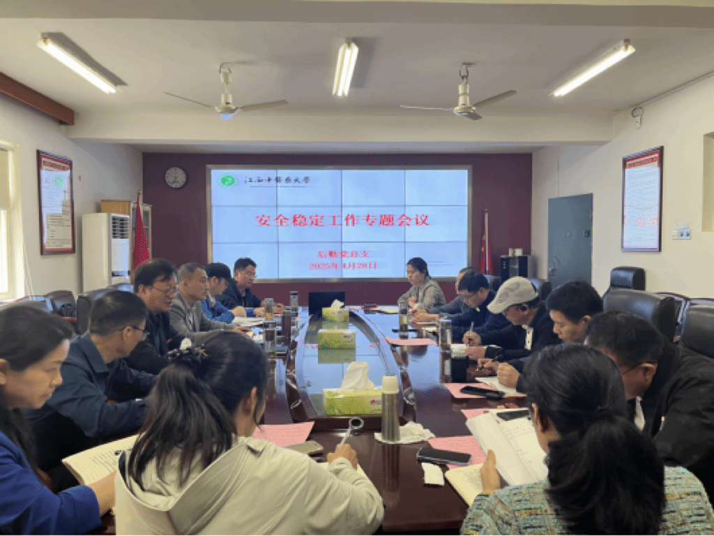 4月28日上午,江西中医药大学后勤召开安全稳定工作专题会议,深入学习贯彻习近平总书记关于安全生产重要论述,传达学习学校《关于开展固本强基“1+7”政策文件体系、〈进一步提升基层应急管理能力若干措施〉等文件精神学习宣贯的通知》精神,详细部署“五一”假期前后安全稳定工作。