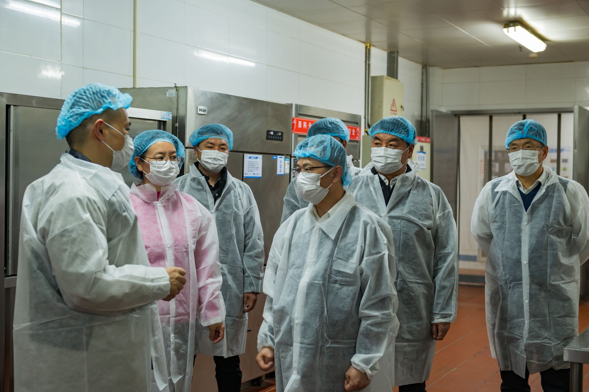 在未来城校区学生一食堂,校长李建威、党委副书记王甫、副校长王文起重点考察“明厨亮灶”运行、食材清洗加工、菜品营养搭配、服务保障及应急管理等工作。查看后厨监控设施、消防器材及卫生环境,认真听取菜品供给、特色服务及师生意见反馈机制建设情况。李建威表示,食堂工作要严把安全、质量、服务“三关”,加强员工专业培训,精准对接师生多样化需求,不断提升供给品质与服务效能,为师生打造放心、安心、舒心的就餐环境。