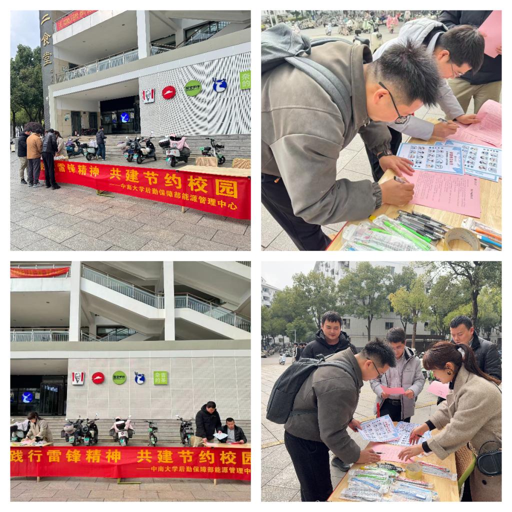 能源管理中心立足专业职能,开展了“践行雷锋精神,共建节约校园”活动。青年志愿者们向学生发放节水节电小技巧卡片和节能小礼物,并组织签订节能倡议书,号召同学们从自身做起,共建“节约中南”。活动将雷锋勤俭节约的精神与校园实际相结合,引导师生践行绿色低碳理念,展现了后勤青年在节能领域的作为与担当。