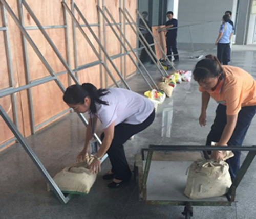对于金砖会晤前期的防台抗汛工作重要等级,已经不是二级响应、三级响应可以描述的,公司及集团分管领导亲赴现场坐阵指挥,调剂全员力量,重兵把守处于低洼地带的厦大校史七馆等重点文物展示馆,卡车叉车轮番运输沙土沙袋、加高并做好挡水门板密封、玻璃落地门架板封闭、坚决打好每一场防风抗汛保卫战。