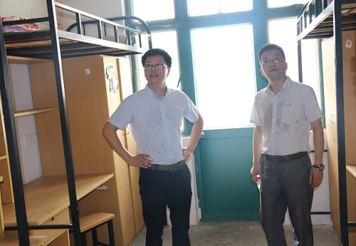 李俊峰一行还深入学生宿舍,仔细查看参赛队员住宿安排情况。目前,比赛选手所住宿舍的床上用品已全部到位;空调已装调试到位;洗衣房粉刷保洁到位。李俊峰还就出入宿舍证件的佩戴、温馨标语的张贴等进行了现场指导,要求工作人员主动、热情、周到、细致地做好保障服务,充分展示学校的精神风貌。