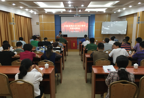 日前,后勤与资产管理处组织召开2016-2017年度述职考核工作会。参加述职测评的人员涵盖处领导干部、后勤机关管理干部及实体正副主任。对处领导干部的测评包括“德、能、勤、绩、廉”五个子项目和一个总体评价,参会人员填写测评表后投入投票箱中,后勤工作人员收齐民主测评表并密封后交党委组织部统计。对后勤机关和实体相关人员的考核和测评包括“德、能、勤、绩、廉”五个方面,以岗位职责或绩效考评为重要依据,重点是本学年政治表现和工作任务完成情况。