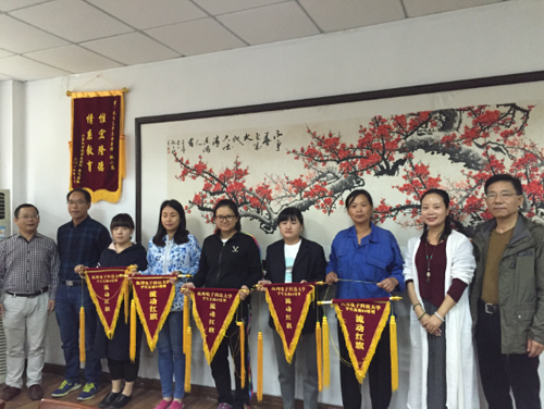 会议后半部分是表彰庆祝。第一、表彰袁法松等在第十三届全国学生运动会服务保障工作中表现突出的先进个人。第二、在9月份的6S管理中,2#楼、18#楼等成绩优秀,授予流动红旗。第三、为漏爱花等退休员工颁发荣誉证书,感谢他们十多年的辛勤工作和积极奉献,此举是中心首创,对即将离开岗位的退休员工而言,这是离别前最好的礼物。第四、继续开展中心的工会活动“集体庆祝生日”,本次为第四季度生日的6名生活指导老师一起庆生,既让员工得到了集体的关爱和温暖,又保持了工会的传统项目,还促进了中心的文化建设。