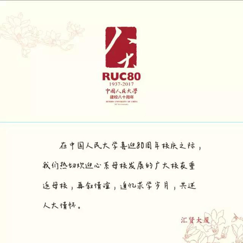 喜迎校庆,推出“客厨RUC”系列活动。在中国人民大学建校八十周年之际,隆重推出“客厨RUC”系列活动,后勤集团总经理宋大我亲自担任总策划,活动邀请全国各菜系、特色美食的餐饮界精英来校交流,共同创新校园美食文化。