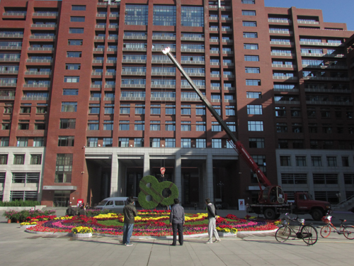 精心设计,建设美丽校园环境。后勤集团组织工作人员对全校区14处校庆花坛景观,暑期补植的月季、黄杨绿篱、沙地柏、棣棠、鸢尾、玉簪、剑麻、丹麦草以及翻新改造的中心草坪进行精心浇灌养护,并于9月29日对明德广场校庆主题大花坛进行改造设计,进一步提升校庆文化主题形象;对百家廊、双趣园、求是园、世纪园、紫藤园等主要活动场所进行清洁维护等;对校园各处行便道修缮、清扫及工程遗留浮土冲洗,对垃圾箱、环保车辆、宣传栏清理擦拭;对校园主干道两侧锈蚀严重的分类式垃圾箱进行更新;对校园日常垃圾及各工程建筑垃圾及时清运等,全面做好校园环境建设工作。