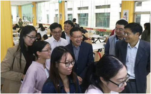 他还检查了泽园学生公寓,来到泽园6幢宿舍查看内部设施,了解洗衣房、开水间等公共设施和学生洗浴设备管理情况。在辅导员办公室,他与辅导员老师愉快交流,了解书院在公寓服务学生的具体内容及工作情况。随后,徐书记一行前往竞秀北楼查看教室管理。他来到教师休息室,与课间休息教师攀谈,称赞学校教学保障意识强,服务到位。他对学校的公共环境、绿化养护、食堂、公寓管理给予了较高的评价。他还查阅了我校后勤安全检查支撑材料,慰问看望了省高校后勤安全检查组的专家,对检查组的工作表示感谢。