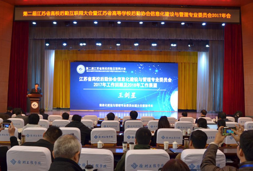2017年11月21日,由我校后勤管理处承办的第二届江苏省高校后勤互联网大会暨江苏省高等学校后勤协会信息化建设与管理专业委员会(2017)年会在我校顺利召开,省委教育工委副书记徐子敏出席会议并致辞。校党委书记王超、副校长李苏北出席相关活动。江苏省教育厅、江苏省高等学校后勤协会领导与专家,以及江苏各高校分管后勤工作的校领导、后勤信息化建设一线管理者近160人参加会议。会议由江苏省高等学校后勤协会信息化建设与管理专业委员会副秘书长王强主持。