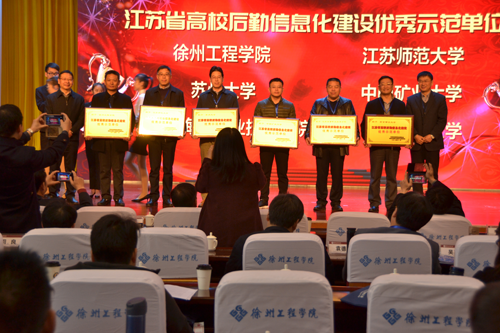 大会对在江苏省高校后勤信息化现金评优答辩中获奖的先进示范单位、先进单位以及先进个人进行表彰。并分别由徐子敏、韩叶祥、李苏北颁发奖牌奖状。