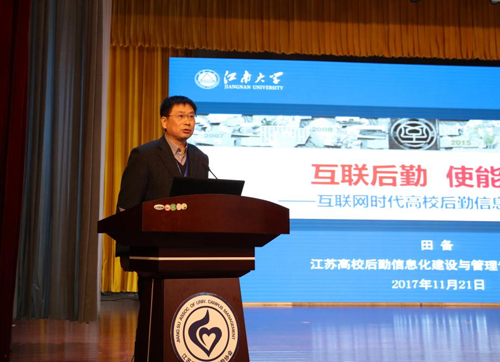 最后,田备作了题为《互联后勤使能服务----互联网时代高校后勤信息化建设思考》的专家报告,并针对江苏高校后勤信息化建设提出了具体指导思想和建设目标。
