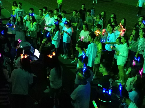 此次荧光夜跑活动分五组同时进行,中间设置了许多趣味游戏,集趣味性、竞技性为一体的活动配上荧光棒,让同学们的热情更加高涨。沿途同学们不断的呐喊声、加油声,更是激发了现场火热的气氛,带动整个活动进入高潮。同学们用汗水迎来了此次活动的圆满落幕。
