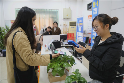 自11月上旬起,一批智能POS终端收费设备在芷兰学生服务大厅和十教后勤服务大厅正式投入使用。前来购买水、电、气的广大师生员工除了采取现金缴纳方式外,还可刷银行卡或通过微信、支付宝扫码进行付费。
