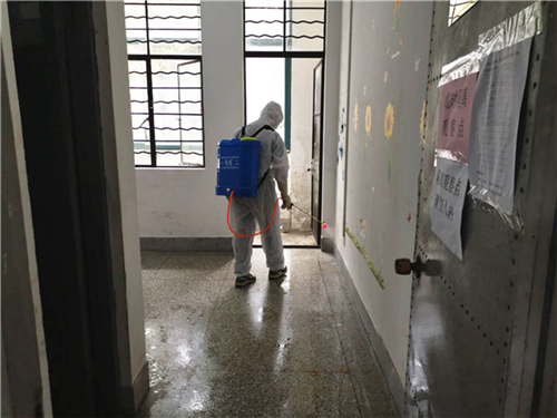 叶宗敏,宿舍管理服务中心值班员,目前负责学校宿舍(公寓)楼27个临时隔离观察点的消毒工作。当接到这个工作任务时,叶师傅的内心一开始是比较忐忑的,但是当他一想到临时隔离观察点的消毒工作对学生的生命安全和身体健康至关重要时,他立刻临危受命,欣然接受了这项任务。根据相关要求,住在宿舍(公寓)楼内的学生一旦出现发热现象,将会送到临时隔离观察点并等待医务室人员到来,在确认学生发热后,将由学校专车送往定点医院进行核酸检测,随后再送往学校集中隔离医学观察点博海酒店进行隔离观察。