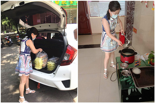 “治疗一线在医院,而疫情防控一线在我这里。”迟阿姨总是这样说。常态化疫情防控之下,迟立萍对待工作没有半点懈怠,不论清早还是深夜,“嘉兴学院观察服务”微信群内只要一有消息声,她总是第一时间回复,想办法为隔离观察学生解决困难。有时候已是后半夜,集中隔离医学观察点也会送来发热的学生,迟阿姨毫无怨言,放弃自己的休息时间,帮助学生完成入住相关手续;有时候隔离观察的学生情绪不稳定,迟阿姨又第一时间当起了“知心大姐姐”,跟学生唠家常谈心,安抚学生的情绪;在得知发热的学生没有胃口时,迟阿姨用食堂的米饭为同学们熬了粥,并给每一位同学送去……每到饭点,食堂里总能见到迟阿姨小小的身影,她拎着打包好的盒饭,快步走着,将自己的车当作送餐车,每天来回于博海酒店与学校食堂之间,只为学生可以按时吃上饭。这样的暖心瞬间还有许多,虽然都是一些力所能及的小事情,但是迟阿姨却用自己的爱与关怀温暖着每一位集中隔离观察点的学生。