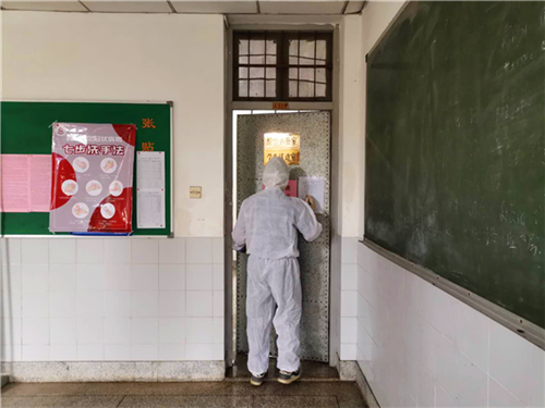 为了确保宿舍(公寓)楼内的临时隔离观察点消毒工作扎实有效开展,开学后,宿舍管理服务中心特邀嘉兴市南湖区疾病预防控制中心的顾医生来临时隔离观察点,就隔离观察点的消毒流程以及消毒人员的个人防护等内容进行了详细培训。“叶师傅,梁林校区学生公寓(1)出现一名发热学生,临时隔离观察点需要消毒!”一接到电话,叶宗敏在做好个人防护后,立刻赶往梁林校区学生公寓(1),迅速开始了全面消毒消杀工作。他按照要求配置消毒水,对房间进行全方位消毒,并填写《专职消毒记录表》,每一项流程都严格按照要求进行,直至消毒工作全部结束。五月孟夏,天气渐热,厚厚的防护服穿在身上,不用几分钟,就已浑身是汗。为了不浪费防护服,叶宗敏一旦穿上防护服后,即使后面没有需要消毒的临时隔离观察点,也是在下班后才脱掉防护服。有同事问过叶师傅:“负责临时隔离观察点的消毒工作,你心里害怕吗?”叶师傅莞尔一笑,铮铮地说到:“在之前国内疫情最严重的时候,这么多的医护人员白衣执甲、逆行出征,他们纷纷按下红手印,主动请战去疫情最严重的地方抗击病毒,他们从来都没有怕过、没有退缩过;和他们相比,我的工作可是安全多了,也轻松多了,所以我一点都不怕;况且能为学校防疫抗疫出一份力,我心里高兴都来不及呢!”