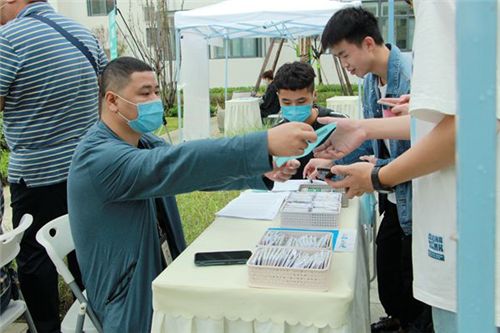 按照防疫不排队的要求,新生购买一卡通需更方便快捷。成都大学后勤为提高服务效率,先由一卡通中心加班加点按楼栋班级分卡打包,在各科室(中心)抽调24位员工,在新生入住的17栋宿舍分设17个购卡点,为新同学们提供全天候服务。9月21日一大早,工作人员已到岗,所有的购卡点便布置到位,一卡通、学生名单、购卡支付宝二维码、使用简介、安全用电宣传等摆放整齐,为购卡时每人附发使用简介,并告知学生通过后勤微信公众号智慧后勤平台给一卡通充值办法。两日内,保证了每个新入学的同学随时都能购卡,不排队、不出错、无纰漏。工作人员耐心、细致、周到的服务,既使同学们不用排队,在宿舍门口便可方便办理完一卡通手续,又接受了用电安全教育,为大学生活上好了安全用电第一课。