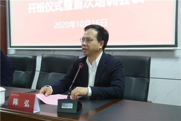 陈弘书记在开班仪式上作了开班致辞。他首先对给予农大后勤事业的关心、支持与帮助的省教育厅、省教育后勤协会领导表示衷心感谢,并充分肯定了广大后勤干部职工在学校后勤保障与服务工作中所作的贡献与取得的成绩。他指出,成绩和荣誉只能够代表过去,面对后勤改革的新形势、新要求,后勤人更要加强学习、增强本领,充分发挥后勤育人功能,将“服务育人”贯穿于后勤保障的全过程,在潜移默化中影响学生的行为举止和品德修养,通过打造一流的后勤,为学校建设一流的大学助力添彩。