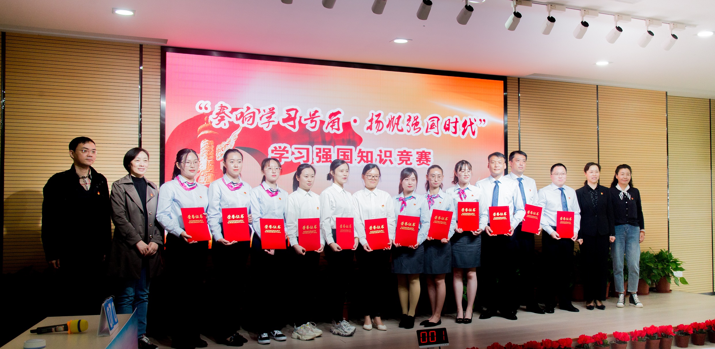 通过“快问快答”必答题、“眼疾手快”抢答题、“智勇双全”风险题、“一锤定音”挑战题四个环节的角逐,机关第二党支部代表队荣获“学习标兵”奖,机关第一党支部代表队、公寓党支部代表队荣获“学习之星”奖,饮食党支部代表队、物业党支部代表队、医疗卫生党支部代表队、幼教党支部代表队荣获“挑战之星”奖。