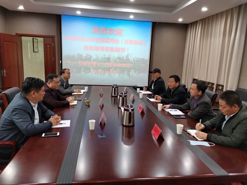 10月27日,江苏科技大学后勤管理处(后勤集团)副处长(副总经理)蔡来新一行四人来江苏大学调研交流,江苏大学后勤处(集团)副处长(副总经理)丁勇及相关科室(中心)负责人在后勤二楼会议室接待蔡来新一行。