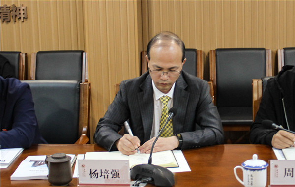 杨培强代表学校对国家验收组的到来表示欢迎和感谢,他从公共机构能效领跑者创建基本要求、能源管理工作开展情况与特点、不足之处和下一步工作计划等三个方面进行了汇报。