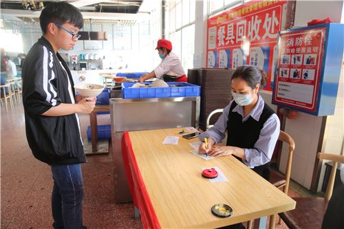 在东湖食堂二楼餐厅,食堂自11月10日起推出了光盘打卡系列活动。同学们如累计光盘打卡10次即可获赠免费就餐券1张,凭光盘拍照发朋友圈还可在食堂现场领取酸奶或饮料。已经累计光盘打卡20多次的张同学评价说:“这个活动既实惠又有意义,可以见证自己,也可以发动他人,真正做到了让光盘节约入脑入心!”