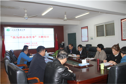 10月22日下午,江西中医药大学后勤第三党支部开展“我为群众办实事”主题党日活动,会上集中学习了《习近平关于网络强国论述摘编》——努力把我国建设成为网络强国,并对习近平总书记“七一”重要讲话进行了宣讲,会上大家还结合基层调研和所处科室的实际情况进行了充分研讨,确定“我为群众办实事”的可行清单,尽力解决师生“急难愁盼”问题。会后支部开展了“党员上门服务”志愿活动,支部全体党员及入党积极分子走进学生宿舍,倾听学生诉求,耐心为学生介绍后勤保障处的服务范围、服务标准及监督途径。